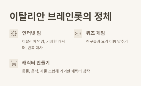 이탈리아 억양의 밈과 함께 인터넷에서 대유행한 이탈리안 브레인롯은 기괴한 캐릭터와 반복적인 대사가 핵심이에요.