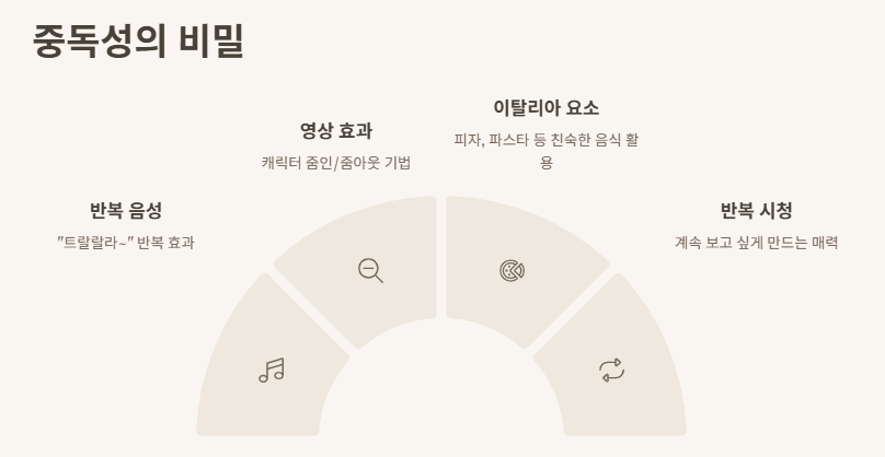 솔직히 이탈리안 브레인롯은 음성과 영상이 포인트야. "트랄랄라~" 반복하고, 캐릭터가 점점 커지거나 줌인되는 영상 효과까지 더하면 진짜 끝. 그리고 이탈리아 음식 요소(피자, 파스타) 넣으면 친구들이 더 몰입하더라. 중독성 강한 이유 알겠지?