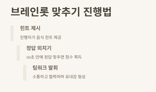 룰은 진짜 간단했어. 진행자가 힌트를 주고, 팀이 정답을 외치는 거야. 예를 들어 "알프레도 소스 올라간 긴 파스타" 하면 다들 "펜네!" 이렇게 외쳤어. 10초 안에 정답 외치면 점수 획득! 소통하고 협력하는 맛이 있더라고. 그리고 이런 게임은 친구들이랑 하면 진짜 유대감까지 높아지니까 좋은 거 같아.