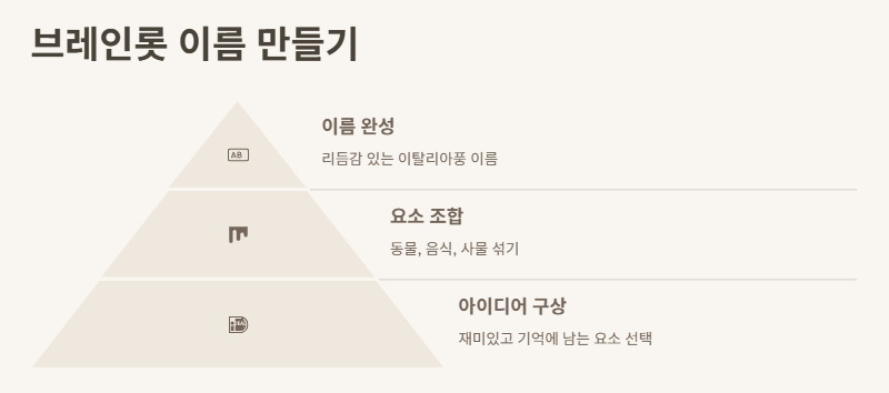 A. 동물, 음식, 사물을 섞어 리듬감 있는 이탈리아풍 이름을 붙이면 돼요.