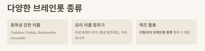 퀴즈 게임처럼 즐기는 이탈리안 브레인롯 맞추기