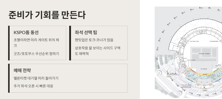 2. 관람 준비 팁: KSPO돔 이동·뷰 포인트·굿즈 동선, 첫 방문자 가이드