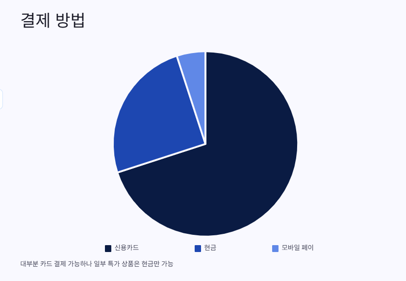 대부분 카드 되지만 일부 행사 제품은 현금만 가능할 수 있어요!