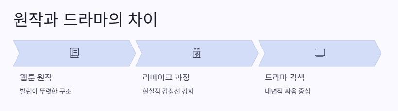 A. 네! 웹툰 원작 기반이지만 드라마는 감정선과 캐릭터 변화에 초점 맞췄어요.