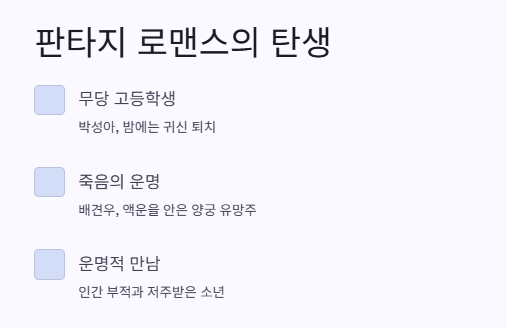 ‘조이현 견우 선녀’라는 키워드 안에는 사실 *“자기 자신을 이겨내는 이야기”*가 숨어 있는 것 같았어. 성아는 평범하게 살아가고 싶지만 운명 때문에 귀신이랑 싸워야 하고, 견우는 자기 인생을 살고 싶어도 죽음이 항상 따라다니니까. 근데 둘이 만나면서 진짜 서로를 변화시켜가는 모습이 대박…