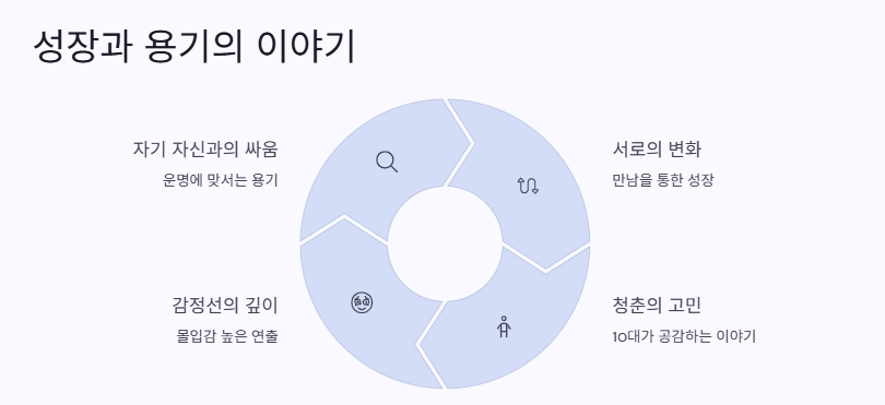 이런 이야기야말로 내가 진짜 좋아하는 “성장형 로맨스”! 진짜로, 감정선도 잘 그려지고 연출도 섬세해서 몰입감 최고였어. 나 같은 10대가 공감할 포인트도 많고, 약간 인생 고민하면서 보게 되는 드라마 느낌?