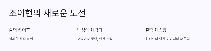 - 조이현이 선보이는 새로운 캐릭터 박성아