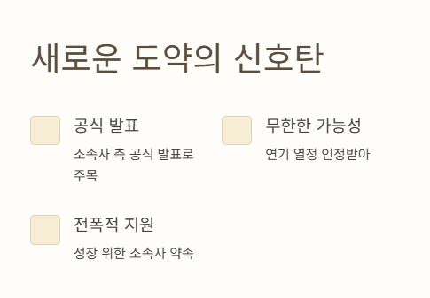 이번 주지아 전속계약 체결 소식은 소속사 측에서 공식적으로 발표되며 더욱 주목받았다. 앤드류컴퍼니 측은 “배우 주지아는 무한한 가능성과 연기에 대한 열정이 있다. 앞으로 더욱 성장할 수 있도록 전폭적으로 지원할 계획이다”고 전했다. 주지아 전속계약이라는 문장은 이제 배우의 이름을 대표하는 키워드가 될 정도다.