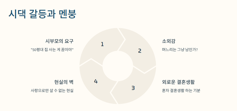 이 말 진짜 들을 때마다 울화통 터졌어. 시댁이 남편만 아들이고, 며느리는 그냥 남인가? 이다은 씨가 혼자 결혼생활 하는 기분이었다는 게 너무 공감됐어. 우리가 진짜 사랑으로만 살 수 없다는 현실적인 이야기를 보여주는 거 같았어.
