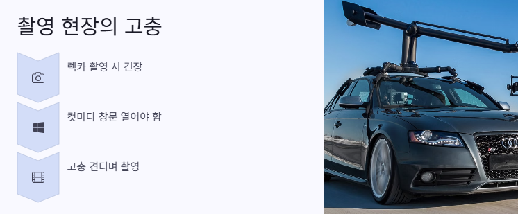 2. 촬영 현장에서의 고충 – 렉카 차에서도 긴장