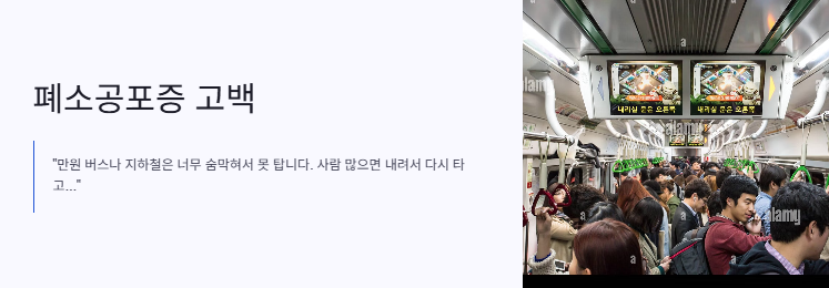 1. 폐소공포증 고백 – 만원 버스·지하철, 쉽게 못 탄다