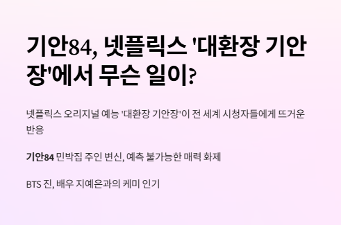“기안84, 넷플릭스에서 민박집 사장이 되다”