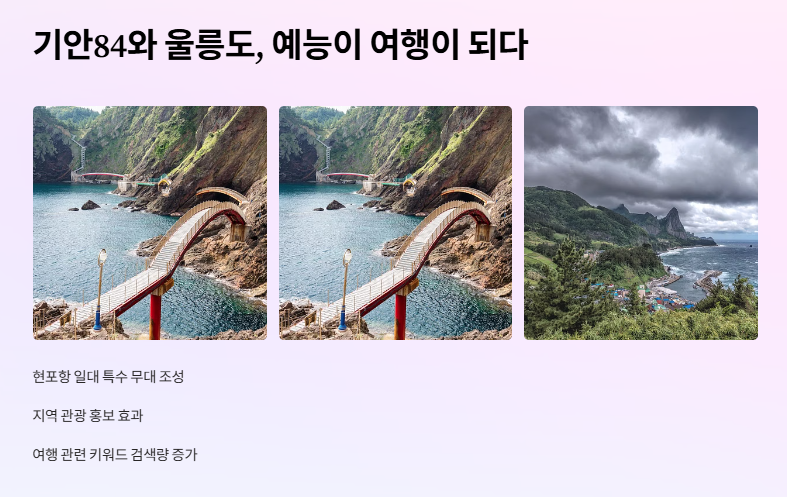촬영지인 울릉도도 기안84의 활약과 함께 다시 주목받고 있다. 현포항 일대는 기안84의 민박집 설치를 위해 특수 무대가 조성되었고, 예능을 통해 지역 관광 홍보 효과도 톡톡히 보고 있다. ‘기안84 울릉도’, ‘기안84 민박집 위치’ 등 여행 관련 키워드 검색량도 함께 증가 중이다.