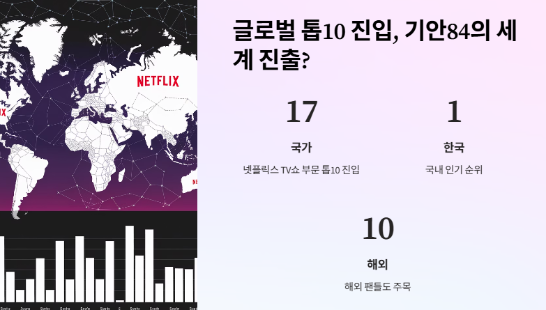 ‘기안84 글로벌 인기’는 단순한 예능 출연을 넘어선 성과다. ‘대환장 기안장’은 한국을 포함해 일본, 미국, 인도네시아, 브라질 등 총 17개국에서 넷플릭스 TV쇼 부문 톱10에 올랐다. ‘기안84 해외 반응’이라는 키워드도 점차 검색량이 늘고 있으며, 해외 팬들도 기안84의 특이한 감성과 인간미 넘치는 리얼리티에 주목하고 있다.
