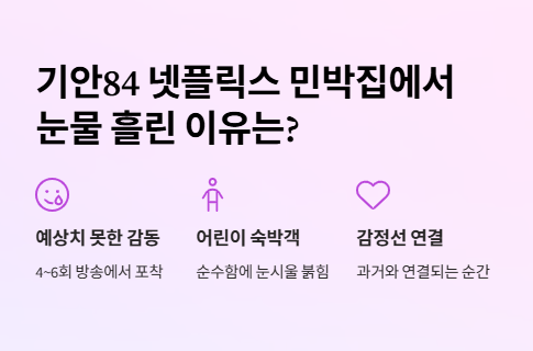 4~6회 방송에서는 예상치 못한 감동도 있다. ‘기안84 눈물’ 장면이 예고편에 포착되면서 팬들의 궁금증이 커졌다. 어린이 숙박객의 순수함과 가족적인 분위기 속에서 기안84는 눈시울을 붉혔다. 그의 과거와 연결되는 감정선이 프로그램에 자연스럽게 녹아들며, 대중은 ‘기안84 넷플릭스 감정 연기’에 대해 새롭게 조명하고 있다.