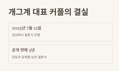 KBS 개그 선후배로 만난 두 사람은 연애를 공개한 이후에도 꾸준히 대중과 소통하며 결혼을 준비했어요. - 결혼식 구성과 특별한 포인트