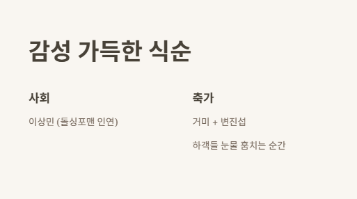 사회는 이상민이 맡았는데, 김준호랑 ‘돌싱포맨’에서 오래 함께한 사이라 그런지 말 한마디 한마디가 찰떡이더라. 축가는 거미랑 변진섭! 진짜 이 조합 너무 레전드 아냐? 특히 거미 언니가 부를 때 주변 하객들이 눈물 훔치는 거 나만 감동 받은 거 아니지?