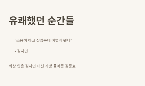 그리고 결혼식 전날에는 김준호가 화상 입은 김지민 대신 가방 들어줬다는 훈훈한 썰도 돌고… 🥺 이런 게 진짜 사랑이지.