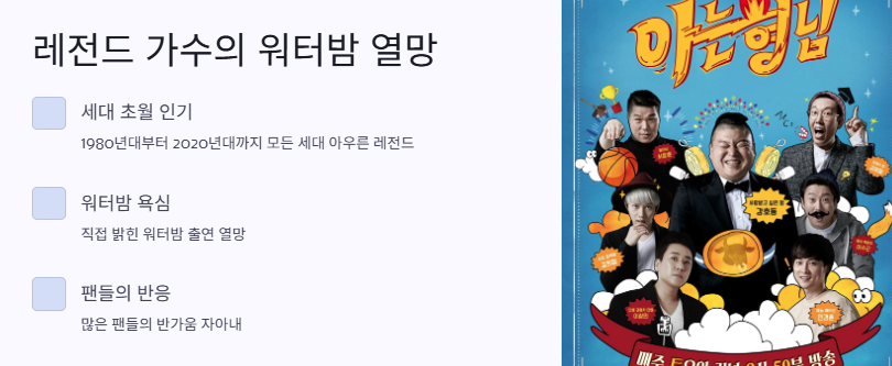 안녕! 나 오늘 진짜 완전 흥분한 상태야! 왜냐면… 내가 진짜 좋아하는 김완선 언니가 ‘아는 형님’에 나와서 워터밤 얘기를 했거든? 😆