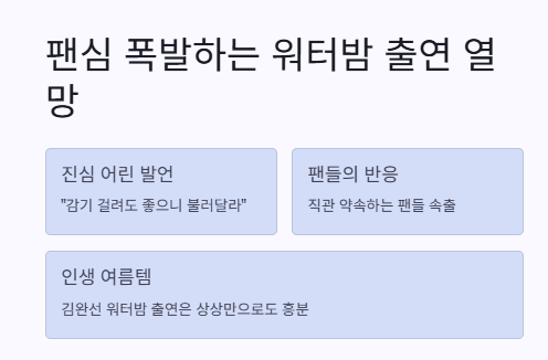 이번 글에서는 김완선의 발언이 주는 의미와 방송에 담긴 워터밤 콘셉트, 그리고 레전드다운 면모에 대해 다뤄볼게요.