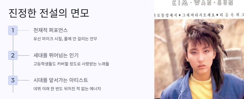 나 고1 때 친구들이랑 김완선 노래 커버했던 기억도 있어. 특히 ‘리듬 속의 그 춤을’ 이거는 지금 들어도 소름이야.