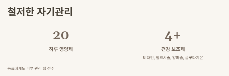 그리고 김영광 씨가 또 말하더군요. “영양제 하루에 20알 먹는다”고요. 비타민, 밀크시슬, 양파즙, 글루타치온 등 다양한 항목을 섭렵했다고 해요. 그리고 김남길 씨에게도 피부 관리 팁을 슬쩍 전하기도 했다네요. 우와, 얼마나 꼼꼼하고 세심한 생활 습관인지 감탄했습니다.