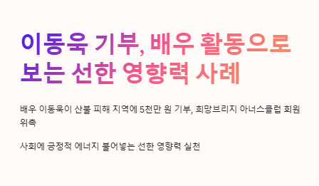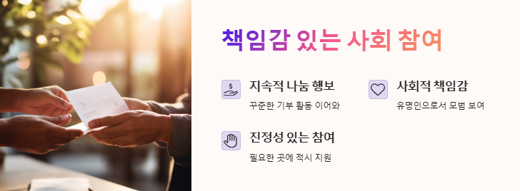 자신의 영향력과 자원을 활용해 사회에 긍정적인 변화를 일으키는 행위로, 이동욱의 기부는 대표적인 예시입니다.