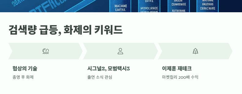 ‘이제훈 프로필’ 키워드는 최근 ‘협상의 기술’, ‘시그널2’, ‘모범택시3’ 출연 소식과 맞물려 검색량이 급증하고 있다.