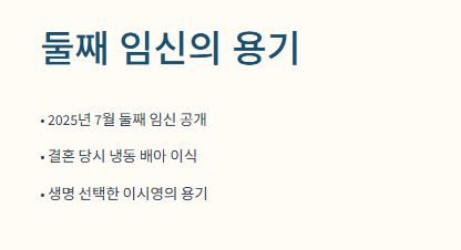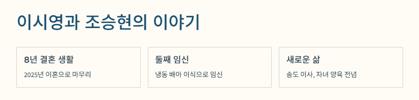 → 이시영과 조승현의 결혼은 화제였지만 2025년 이혼으로 마무리되었어요. - 이시영 둘째 임신 배경