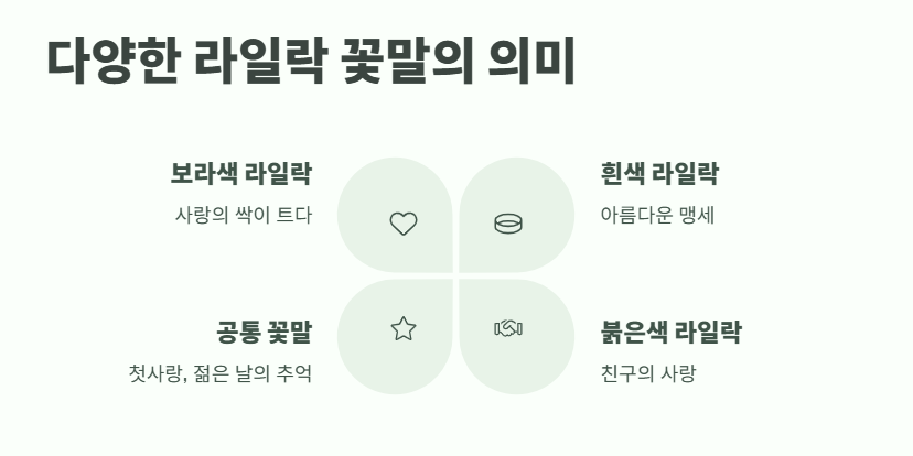 ‘라일락 꽃말’이라고 검색했을 때, 생각보다 다양한 의미가 있다는 걸 알고 깜짝 놀랐어요. 단순히 향기 좋은 봄꽃인 줄만 알았던 라일락이 사실은 사랑, 우정, 맹세 같은 감정들을 담고 있다는 사실에 감동했거든요.