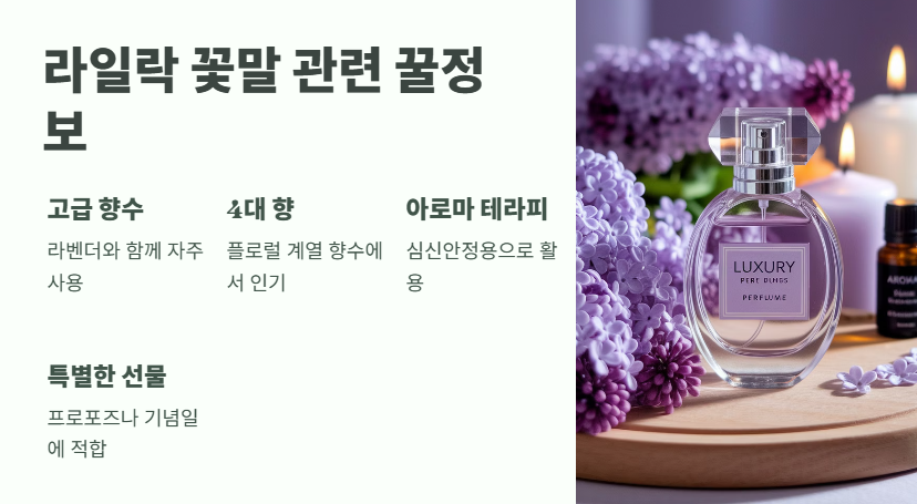 - 라일락은 라벤더와 함께 고급 향수에 자주 사용돼요.