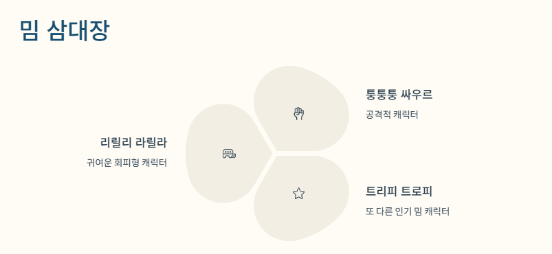이런 리듬감 있는 밈은 “트리피 트로피”나 “퉁퉁퉁 싸우르”처럼 다른 캐릭터들과도 이어지면서 진짜 ‘세계관’처럼 퍼지는 중!