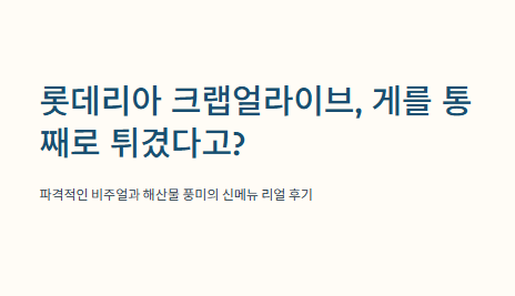며칠 전 친구랑 영화 보고 집 가는 길에 우연히 롯데리아 신메뉴 크랩얼라이브 버거 포스터를 본 거예요. "게를 통째로 넣었다고?" 진짜 말이 안 되잖아요 ㅋㅋㅋㅋ 너무 궁금해서 바로 롯데리아로 직진했어요. 요즘 롯데리아크랩버거가 SNS에서 꽤 핫하더라구요. 그중에서도 블랙페퍼맛으로 후기 많은 거 보고 저도 그걸로 픽!