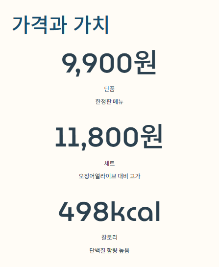 가격은 단품 9,900원, 세트는 11,800원이었는데요, 롯데리아오징어얼라이브에 비하면 조금 더 비싼 편이에요. 그래도 ‘게가 통째로’라는 재료를 생각하면 나름 합리적인 가격이긴 했어요. 그래도 솔직히 말하자면 자주 먹기엔 부담될지도… 한 번쯤은 도전해볼 가치 있는 메뉴!