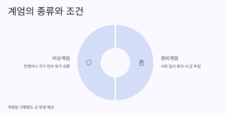 이제 좀 더 깊이 들어가 보자면, 계엄이 뭔지, 언제 가능한지도 조금 정리해봐야 할 것 같아. 계엄 조건은 크게 두 가지로 나뉘는데, 비상계엄과 경비계엄이야. 경비계엄은 사회 질서가 무너졌을 때 경찰로 안 될 경우 군 투입 가능한 거고, 비상계엄은 전쟁이나 국가 안보 위기 상황에서 나오는 거야. 근데 이걸 어떻게 정하냐? 그게 바로 계엄법 시행령에서 상세히 정리되어 있더라고.