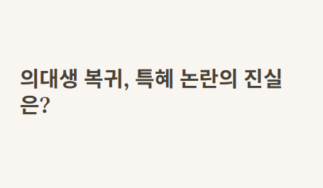 요즘 나는 친구들과는 조금 다른 관심사를 갖고 있어. 뉴스를 켤 때마다 ‘의대생 복귀’가 주요 이슈로 다뤄지는 걸 보고 자연스럽게 관심이 생겼거든. "의대생 복귀, 특혜 논란의 진실은?"이라는 제목만 봐도 궁금증이 생기지 않아? 지난 봄, 정부의 의대 정원 확대 정책에 반발해 의대생들이 대거 수업을 거부했다는 소식을 들었을 때도 놀랐지만, 그들이 다시 학교로 돌아온다는 이야기를 들으니 더 궁금해졌어. 고등학생인 나로선 대학생들이 학교를 떠나는 것 자체가 상상하기 어려운 일이었거든. 그래서 뉴스를 찾아보고, 여러 기사와 SNS를 보면서 이 상황을 직접 이해해보려고 했어.
