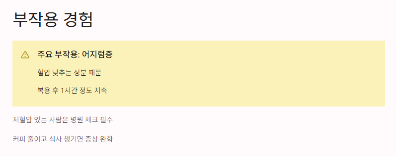 → 두통, 어지러움 같은 부작용이 있을 수 있고, 특히 혈압 낮은 사람은 꼭 병원 상담 필요!