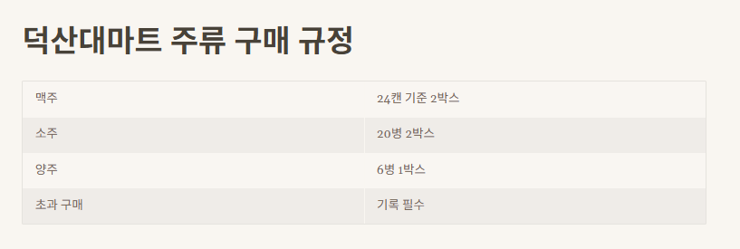 FAQ. 덕산대마트의 주류 구매 규정은 어떤가요?