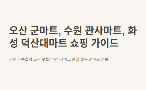 지난주에 오산 군마트 간다고 계획 세웠는데, 결국 수원 관사마트랑 화성 덕산대마트까지 갔다 왔어요! 완전 마트 투어였달까? 😆 원래는 그냥 간단히 장만 보려고 했는데... 일단 갔다 오면 알게 되실 거예요. 여긴 한 번만 가면 안 되는 곳!