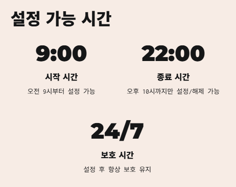 매일 오전 9시부터 오후 10시까지만 설정 또는 해제가 가능해요.