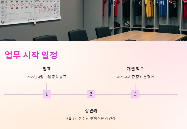 2025년 5월 1일 선수단과의 상견례를 시작으로 본격적인 업무를 시작한다.