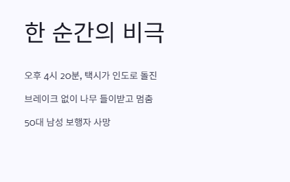 나도 처음에 이게 새벽 시간대 사고인 줄 알았거든? 근데 서울 택시 할증시간도 아니고, 오후 4시 20분이잖아. 진짜 아무 생각 없이 길 걷다가도 당할 수 있는 시간대고 장소였던 거야. 서울 택시 할증 얘기하면 밤늦게만 조심하면 된다고 생각하잖아. 근데 요즘은 평일 대낮에도 이런 사고가 터지니까 진짜 충격이 더 큰 거 같아.