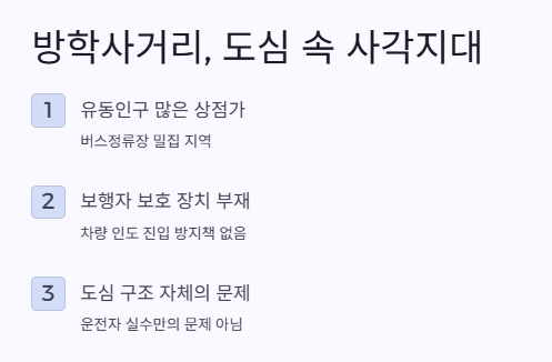 서울 택시 돌진 사고가 난 방학사거리는 유동인구도 많고, 버스정류장도 많고, 상점가도 밀집된 곳이야. 근데 거기에 차량이 인도로 진입해도 막을 수 있는 장치가 없었다는 게 진짜 큰 문제야. 보행자 보호용 차단봉이나 방호펜스가 없었던 거지. 이건 단순한 운전자 실수로만 넘길 일이 아니야. 도심 구조 자체에도 문제가 있다는 걸 보여주는 사례라고 생각해.