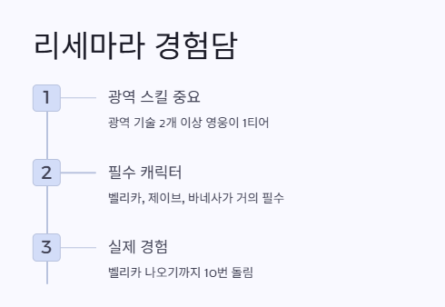 리세마라는 빠른 스타트와 장기적인 효율 모두 잡는 게 포인트입니다. 튜토리얼 스킵법과 전설 영웅 노리는 방법까지 알려드립니다.