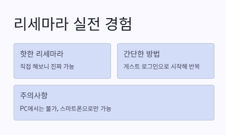 | 리세 가능 여부 | 모바일만 가능 (PC는 게스트 계정 안 됨) |