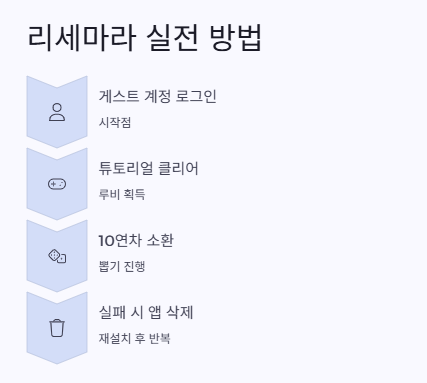 → 게스트 계정 활용, 튜토리얼 스킵, 소환 후 결과에 따라 재설치 반복