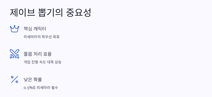 리세를 하면 초반 진행이 훨씬 수월해져요. 특히 제이브 같은 S급 캐릭터 뽑으면 효율이 확 올라가요.