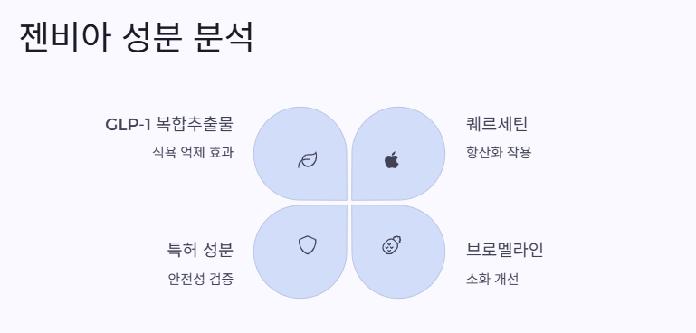 사실 처음엔 나도 의심했어. 젠비아는 GLP-1 복합추출물 성분이 들어가 있다고 하길래, ‘이게 뭐야?’ 싶었는데, 알고 보니까 식욕 억제하고 혈당 안정화까지 도와주는 특허 성분이래.