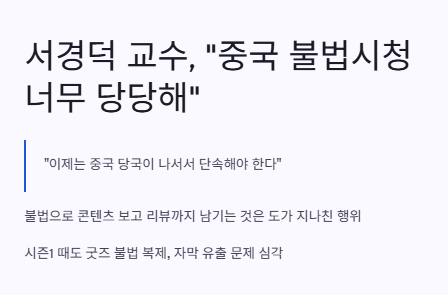 그래서인지 요즘 "오징어게임3 서경덕 교수님 뭐래?" 이런 검색어가 많더라고요. 성신여대 서경덕 교수님이 이 일에 대해서 엄청나게 강력하게 비판하셨어요. 중국 정부가 아무 조치도 하지 않고 있는 건, 진짜 국제 사회에 부끄러운 일이라고 하시더라고요.
