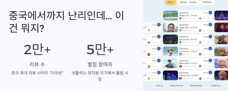 중국은 넷플릭스 공식 미지원 국가인데도 불법 스트리밍, 다운로드로 콘텐츠를 보고 리뷰까지 남겨 문제가 돼요.
